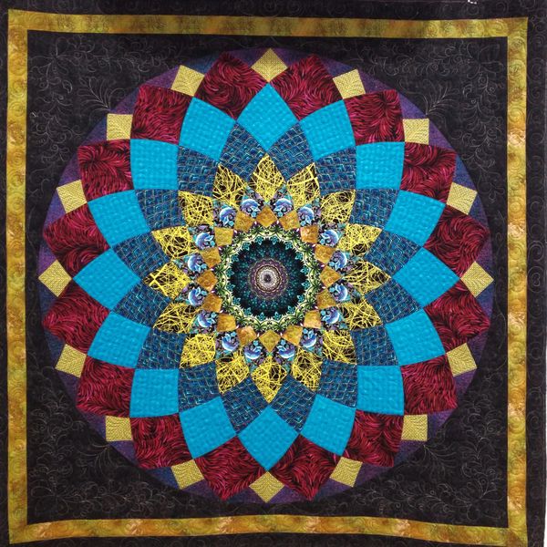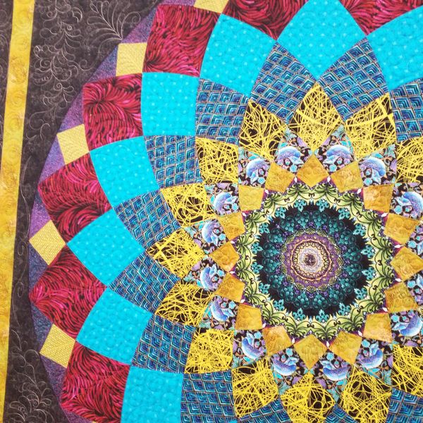 Star Burst - Back of quilt shown Bobbin Thread changed to match top colour Custom Quited Runner Up for First Time Entrant in Show Case 2023